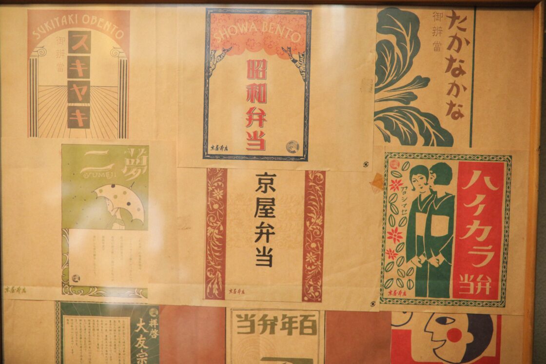 京屋本店の歩みを物語るお弁当の包み紙の数々。