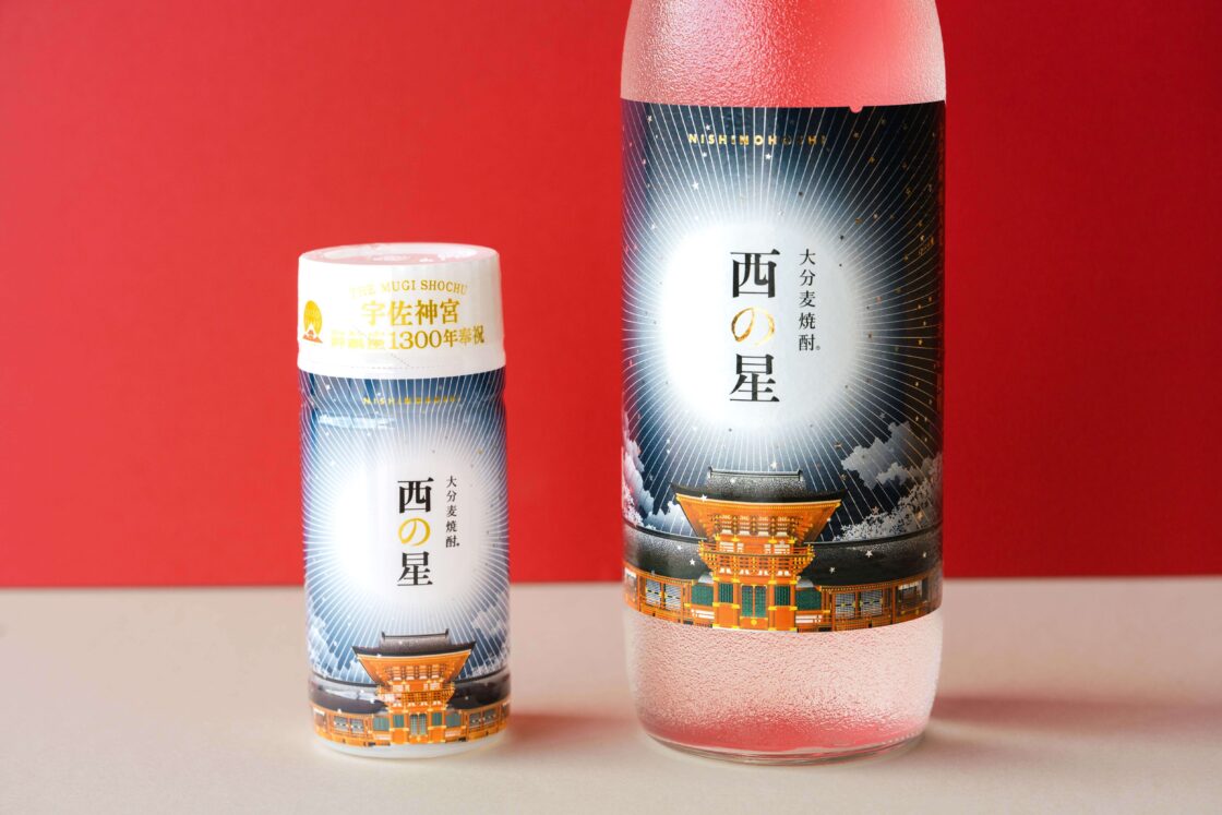 宇佐神宮ご鎮座1300年を記念して発売された特別限定パッケージの『西の星』。原料には、宇佐で育った大麦「ニシノホシ」が使われています。