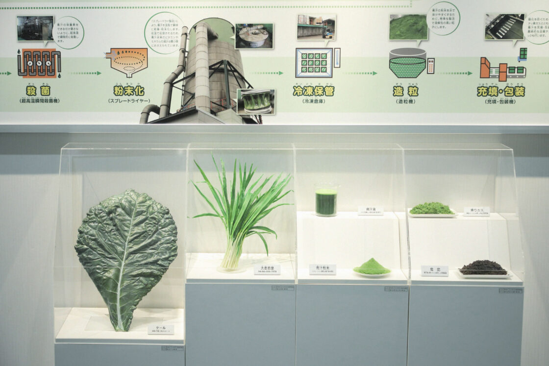 ヤクルトヘルスフーズの青汁は抹茶のようなきめ細やかさ。搾汁後の搾りかすは堆肥として再利用するなど、人にも環境にもやさしい青汁です。
